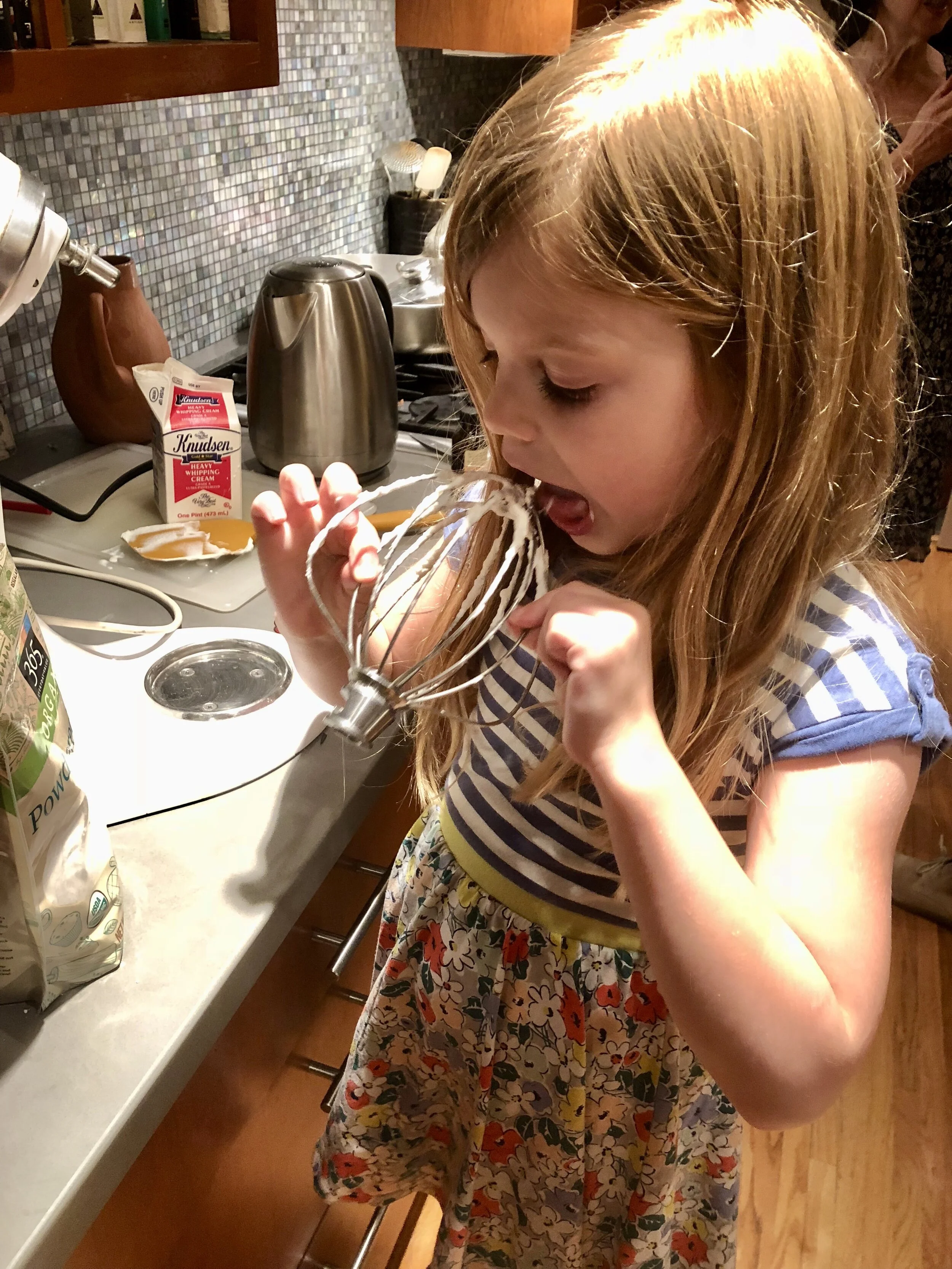 Testing the whipped cream as a little girl.