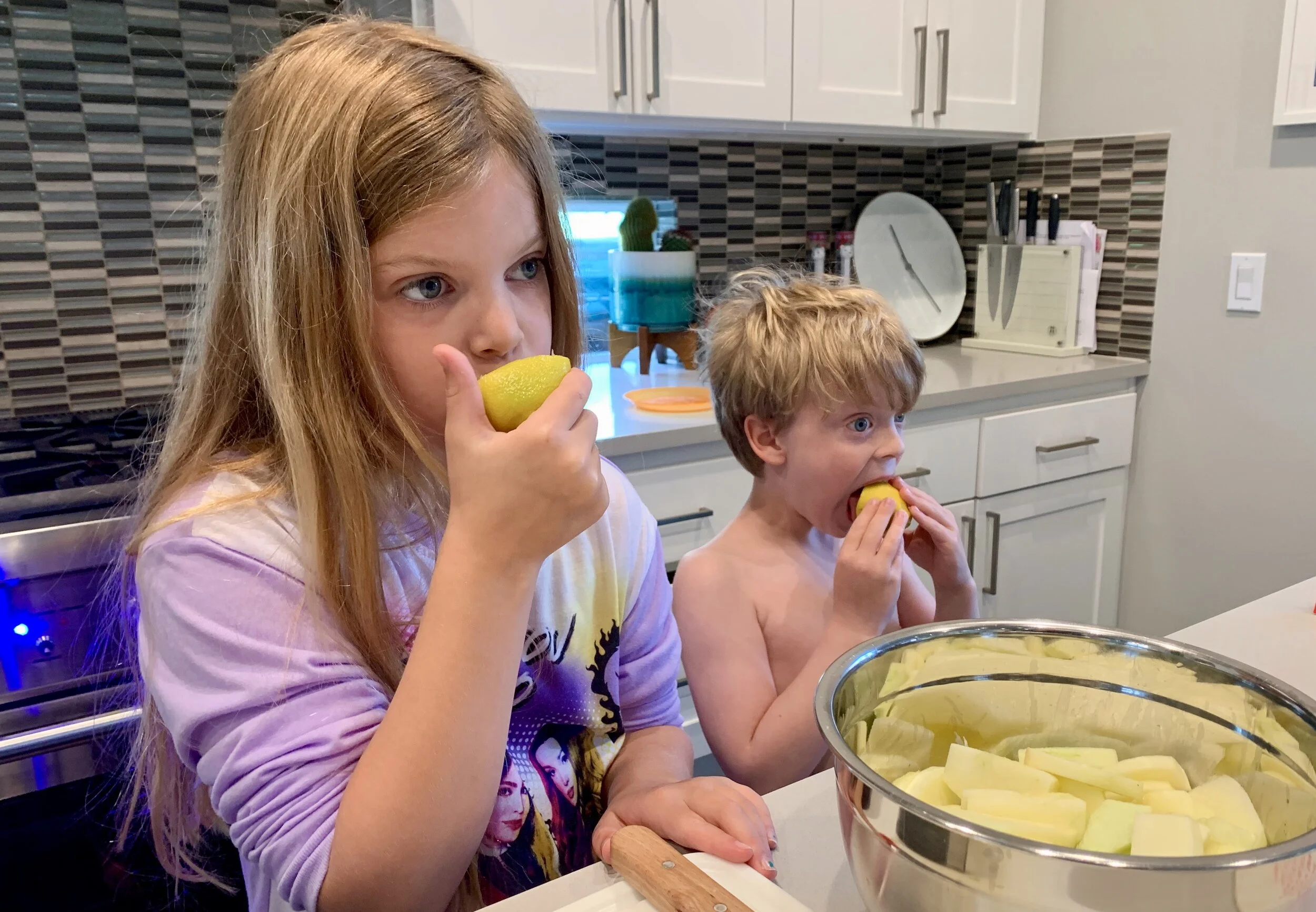 Piper and Finn love to suck a lemon.